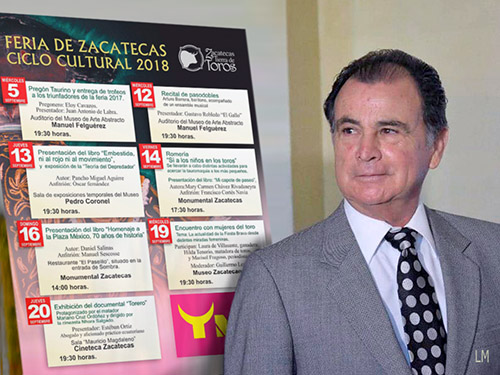 Hoy comienza el Ciclo Cultural de la Feria de Zacatecas, bajo la organización de la empresa "Zacatecas, Tierras de Toros" y Tauromaquia Mexicana, con el Pregón Taurino, a cargo del maestro Eloy Cavazos, que será transmitido en vivo a través de Estereoplata (91.5 FM).