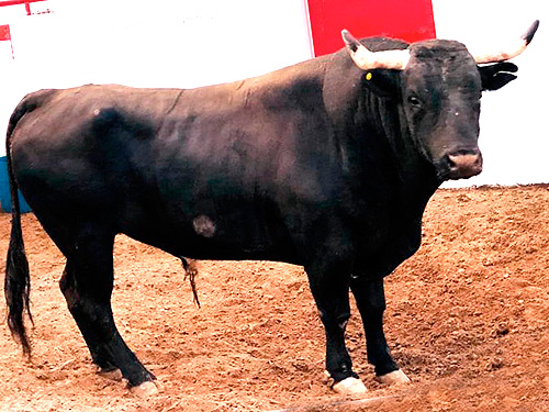 No. 387, negro bragado, meano, cornipaso, con 505 kilos (Teófilo Gómez).