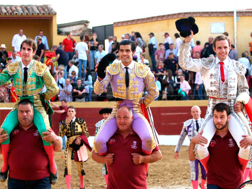 El novillero Diego San Román dio un golpe de autoridad y se alzó como el máximo triunfador tras cortar dos orejas y un rabo en la localidad toledana de Fuensalida, el mexicano compartió la salida a hombros con Ignacio Olmos y Fernando Plaza que cortaron sendas orejas