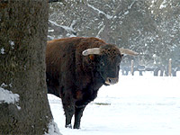 Muchas ganaderías están pintadas de blanco, y el paisaje que se produce con los toros de lidia en medio de la nieve es espectacular.