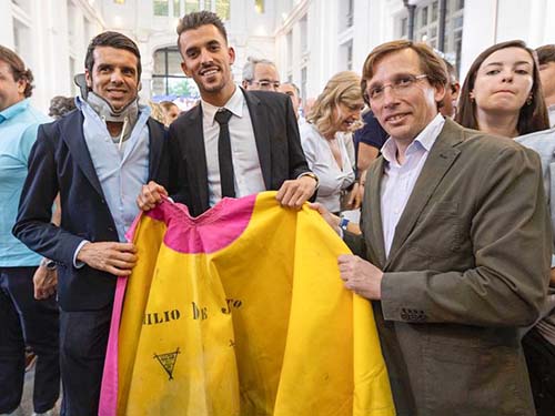 A Ceballos, precisamente, Emilio de Justo le hizo entrega junto al Alcalde del capote con el que lidió al único toro que pudo estoquear en su encerrona del pasado Domingo de Ramos en Las Ventas, en la cual el futbolista estuvo presente. De esta forma, De Justo quiso agradecerle su defensa y apoyo sin complejos a la tauromaquia entregándole dicho obsequio.