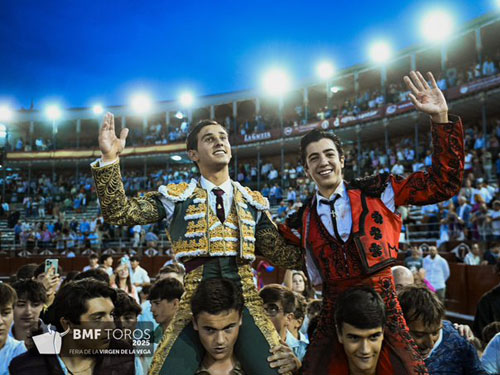 Ismael Martín y Marco Pérez compartieron la salida a hombros la tarde de hoy en Salamanca, donde el nombre de Morante de la Puebla llenó la plaza y el par de jóvenes alternantes aprovecharon a los mejores toros de la corrida, generando una rivalidad que les permitió cortar las orejas y salir a hombros.