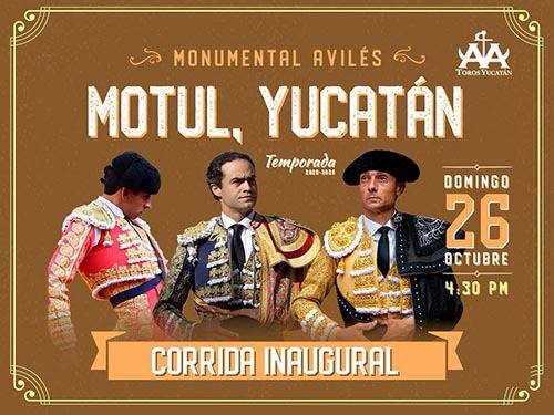 El primer festejo del serial quedó programado para el 26 de octubre a las 4:30 de la tarde, con lo que la plaza motuleña será escenario del debut de la empresa en esta localidad, luego de haber encabezado durante varios años las temporadas taurinas de la Monumental de Mérida.