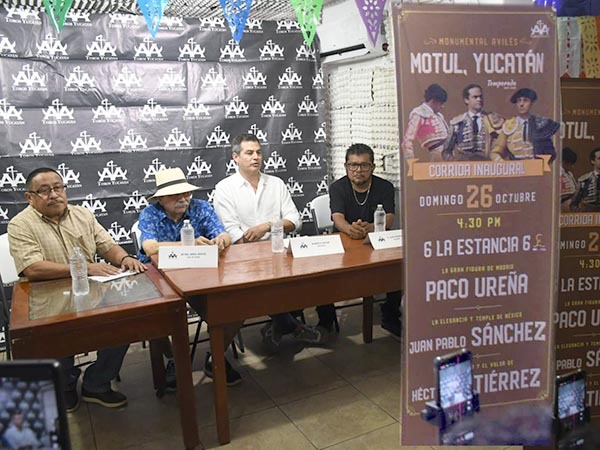 La empresa Toros Yucatán presentó oficialmente la corrida inaugural del domingo 26 de octubre en la plaza Monumental Avilés de Motul, donde harán el paseíllo Paco Ureña, Juan Pablo Sánchez y Héctor Gutiérrez, quienes lidiarán un encierro de La Estancia, en punto de las 16:30 horas. A lo largo de la rueda de prensa, se informó que la empresa dará una corrida de rejones, así como la tradicional Corrida Blanca, fechas con carteles y ganaderías aún por confirmar, las cuales ya forman parte de la tradición, ofreciendo una identidad propia a la Fiesta de la Península (con información de Mauricio Perera, de Península Taurina).