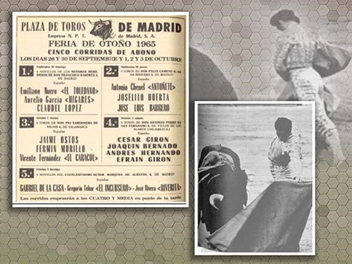 En este texto se rememora la última de ellas, que César anunció como la de su despedida y que le permitió cobrar los apéndices de un ejemplar de Antonio Pérez de San Fernando por una faena izquierdista que todavía se recuerda. Fue en la Feria de Otoño de 1965, cuando el as caraqueño ya toreaba poco –sólo 16 corridas en Europa en un año en que sus hermanos Curro y Efraín totalizaron 20 cada uno–, lo cual no impidió que en tan señalada ocasión ofreciera a los madrileños una cátedra inolvidable.
