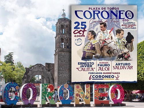 Al día siguiente se realizará una corrida de toros con el rejoneador Fauro Aloi, el grupo de Forcados Queretanos, Ernesto Javier "Calita" y Arturo Saldívar, quienes enfrentarán un encierro de la ganadería de Coroneo. Los boletos tendrán un costo de 200 en zona General y 400 en Barrera, con el cual se podrá acceder a la zona VIP del teatro del pueblo.