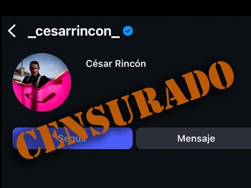 La cuenta oficial de Instagram del maestro César Rincón fue suspendida sin motivo aparente, más allá de ser un perfil con contenido taurino, lo que representa un nuevo ataque en contra de la tauromaquia, luego de que el matador colombiano generó revuelo virtual tras su reciente participación en Las Ventas. No hay que dejar de lado que se trata de una empresa estadounidense que, guiada por algoritmos, en cuanto percibe que existen contenidos denunciados, termina por cancelar los canales taurinos, tal y como le sucedió a este y otros medios de comunicación.