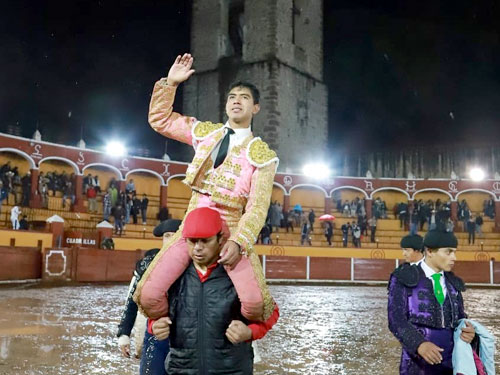 Se hizo el paseíllo entre la lluvia que empezaba y arreció apenas salió el primer ejemplar, el torero instrumentó una buena serie de verónicas con temple; luego de un puyazo los banderilleros apenas cumplieron su cometido. De inmediato Jesús inició en los medios de hinojos aguantando la embestida en muletazos sobre pitón derecho que le corearon al igual ya puesto de pie y cuando se puso la sarga en la mano izquierda, conjuntando una buena labor que empañó con la espada. Para el novillo hubo palmas en el arrastre y para el novillero las hubo igual tras un aviso.
