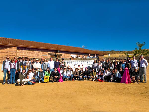 La peña taurina de Bruno Aloi en España organizó un encuentro en la finca "Campos Taurinos", localizada en la provincia de Guadalajara, al que asistieron unas 80 personas para despedirlo antes de su regreso a México, donde el próximo sábado 1 de noviembre toreará en Juriquilla la última novillada de su carrera, previo a la alternativa que tomará en Aguascalientes.