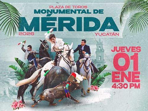 La empresa Representaciones Caparica anunció el cartel de la tradicional corrida de rejones del 1 de enero en la Monumental Mérida, que en este caso presenta a Emiliano Gamero, Cuauhtémoc Ayala y Guillermo Hermoso de Mendoza, quienes el primer día de 2026 lidiarán un encierro de Zacatepec, en punto de las 16:30 horas.