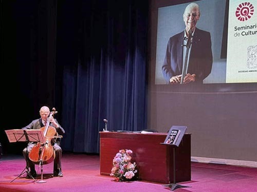Vázquez Sosa señaló que este músico mexicano representa una metamorfosis única en la historia de la música contemporánea. Durante casi medio siglo ha actuado en los escenarios mas importantes del planeta, su trayectoria como concertista lo ha consolido como el violonchelista mas destacado y trascendente de México.
