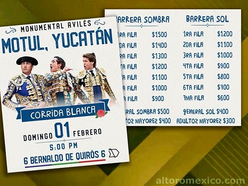 Publican precios de la Corrida Blanca de Motul