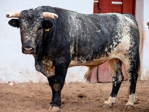 Número 44, negro entrepelado, cornidelantero, con 550 kilos.