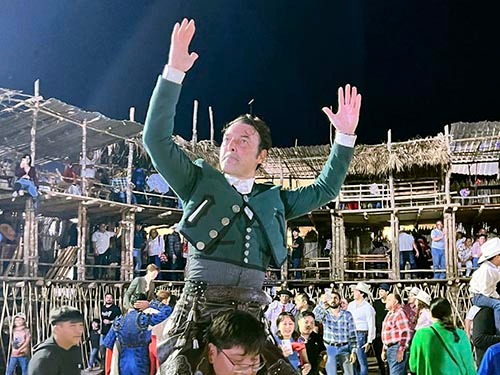 El público lo espero al final de la corrida y por largo tiempo lo estuvo aclamando y tomándose fotos con él, en especial, los niños que bajaron de los palcos de esa plaza artesanal para convivir con el joven rejoneador.