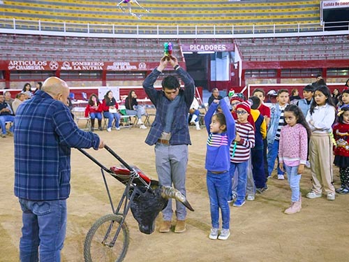 De manera lúdica los niños aprendieron vestir las banderillas en compañía de sus padres y amigos. Minutos más tarde, Fonseca, en compañía del torero moreliano Bruno Vélez, enseñó a los niños sobre la importancia de los palitroques durante un festejo taurino, finalizando con una clase práctica.