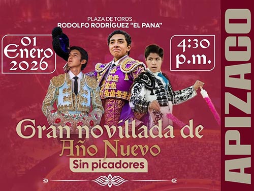 El ayuntamiento de Apizaco, que encabeza Javier Bonilla Rivera, tomó la ejemplar decisión de organizar una novillada sin picadores, para paliar la sorpresiva suspensión de la corrida que debía celebrarse este jueves 1 de enero, y con la finalidad de no dejar sin toros a la afición en una fecha tradicional de su calendario taurino.