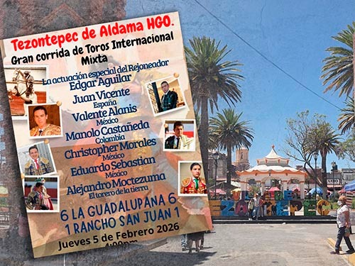 El municipio de Tezontepec de Aldama presentó su tradicional festejo de feria correspondiente a las fiestas en honor a la virgen de La Candelaria, con una corrida mixta que se realizará el jueves 5 de febrero, en la plaza "Atenógenes González", localizada en este municipio del estado de Hidalgo.