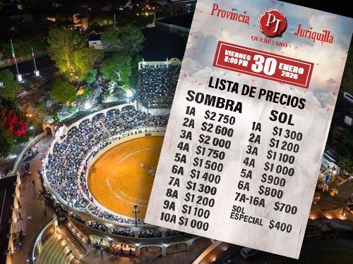 Los precios van desde los 400 pesos en la zona de Sol especial, hasta los 2 mil 700 pesos en Barrera de primera fila de Sombra, con algunas diferencias a los de la pasada corrida internacional del 28 de noviembre.