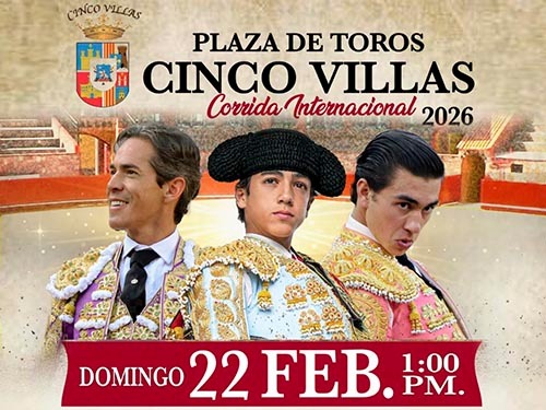 La plaza de "Cinco Villas" reabrirá sus puertas el 22 de febrero con una corrida de toros en la que actuarán Diego Silveti, Marco Pérez y Bruno Aloi, quienes lidiarán un encierro de Las Huertas, propiedad de la familia Barroso, en una combinación inédita de dos jóvenes acompañados de la veteranía del guanajuatense.