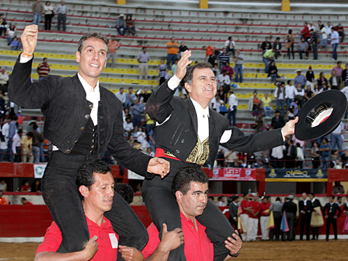 Eloy Cavazos y Christian Aparicio se acompañaron en la triunfal salida a hombros al final del festival a beneficio del apoderado Rafael Báez, que se celebró en la Monumental de Morelia, donde también tocaron pelo El Capitán y Juan Chávez.