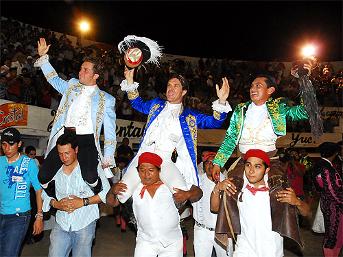 Una estupenda corrida de rejones tuvo lugar este domingo en la ciudad yucateca de Motul, en la que Rodrigo Santos, Jorge Hernández Gárate y Fernández Madera, compartieron el triunfo y salieron a hombros entre el júbilo de la afición.