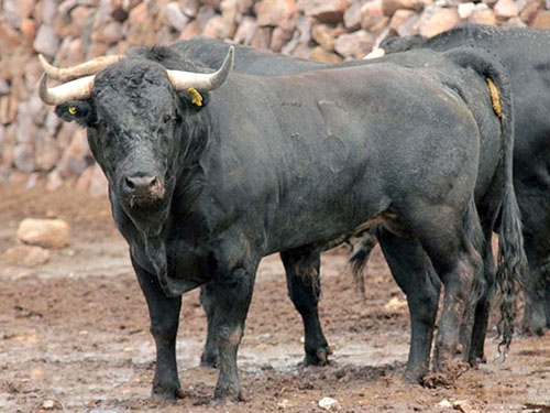 No. 10 “Don Pastelucho" negro entrepelado bragado, paliabierto, con 520 Kilogramos.