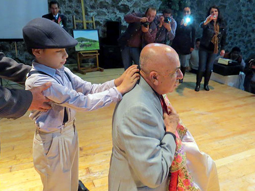 Porteño con su nieto Luciano, en el corte simbólico de coleta