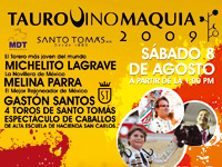 En esta ocasión, la oferta taurina está integrada por el rejoneador Gastón Santos, la novillera Melina Parra y el niño torero Michelito Lagravere, quienes ldiarán cuatro ejemplares de Santo Tomás.