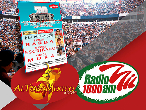 Al Toro México y Radio Mil les ofrecen el audio en vivo de la corrida de esta tarde en la Plaza México, a partir de las 16:25 horas, y en la que actuarán Fabián Barba, Manuel Escribano y Víctor Mora, con toros de la ganadería de La Punta.