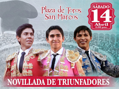 La empresa Espectáculos Taurinos de México anunció el cartel para la novillada de triunfadores en Aguascalientes, a celebrarse este sábado 14 de abril en la plaza "San Marcos", a las 18:00 horas, enmarcando el arranque de los festejos de feria.