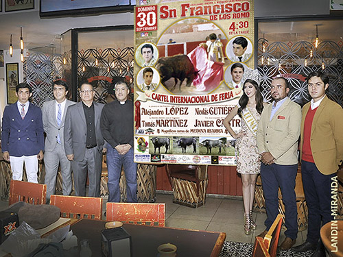 El festejo se llevará a cabo el próximo domingo 30 de septiembre a las 16:30 horas, y cartel está compuesto por cuatro jóvenes espadas, encabezado por Alejandro López, quien hará el paseíllo acompañado del torero venezolano Tomás Martínez y los matadores hidrocálidos Nicolás Gutiérrez y Javier Castro, quien estrenará el doctorado adquirido en el pasado mes de abril, en la feria de San Marcos. El encierro fue reseñado en los potreros de la ganadería Medina Ibarra, propiedad de Jorge Medina Rodríguez e hijo.
