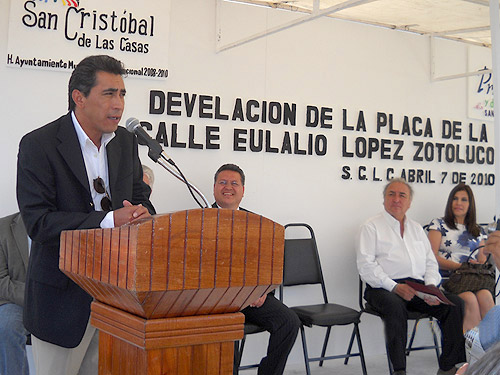 Hace unas horas se realizó la develación de la placa en la avenida que, a partir de este día en la ciudad chiapaneca de San Cristóbal de las Casas, toma el nombre de Eulalio López "Zotoluco", en reconocimiento a su trayectoria.