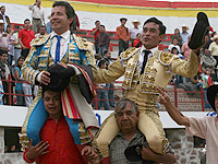 Al final de la corrida los dos toreros salieron a hombros.