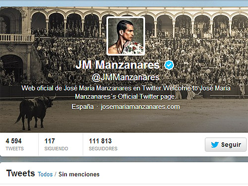 Hace algunos días, la cuenta en Twitter del matador alicantino José Mari Manzanares (@JMManzanares) ha sido verificada por la propia red social, convirtiéndose así en la primera cuenta de un torero que logra este paso, lo cual protege contra las suplantaciones de identidad.