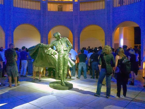 La inauguración de esta exposición escultórica corrió a cargo de Renán Barrera Concha, alcalde de la ciudad, acompañado de Juan Manuel Peraza, nieto del escultor; Hernán Evia Góngora, presidente de la Comisión Taurina, y Elías Lixa Abhimeri, regidor de espectáculos.