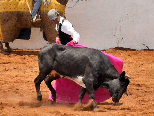 El ganadero soltó al ruedo dos novillos en puntas seleccionados para sementales; el primero de pelaje negro, sangre Jandilla, con el número 169, no se empleó como se esperaba; sin embargo el segundo de pelaje cárdeno, sangre pura saltillo, con el número 68, resultó ser muy bravo y obligó al venezolano a emplearse a fondo.