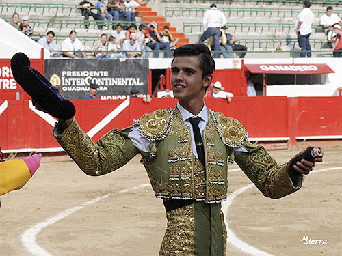 Diego Sánchez cayó de pie ante la afición tapatía, durante la primera novillada de la Temporada en la plaza "Nuevo Progreso", donde cortó una oreja al novillo de su debut, en una tarde en la que Antonio Mendoza y José Mari Pastor estuvieron esforzados.