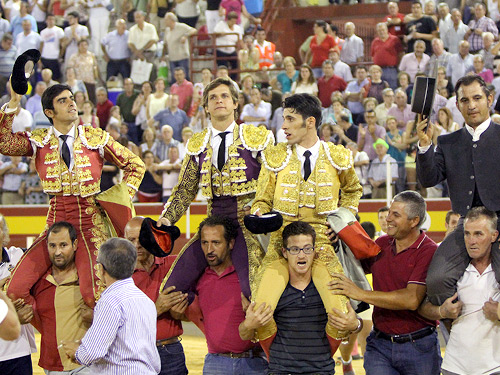 El Juli, Miguel Ángel Perera y Alejandro Talavante, ofrecieron una gran tarde de toros en la plaza de Tomelloso, provincia de Ciudad Real, donde los tres salieron a hombros tras dar cuenta de un excelente encierro de la ganadería de Montalvo, cuyo mayoral también se unió al triunfo.