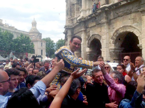 Rotundo y emotivo fue el triunfo que logró Enrique Ponce durante la corrida matinal de la Feria de Pentecostés, en el Coliseo Romano de Nimes en el marco del homenaje por su 25 aniversario de alternativa, y a la postre abrió en volandas la Puerta de los Cónsules.