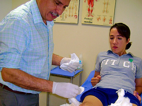 La matadora michoacana Hilda Tenorio ha sido revisada esta mañana por el doctor Adrián Flores Ríos, en la ciudad de Morelia, para determinar la mejoría tras la operación de su rodilla derecha, y ha encontrado que la herida evoluciona de manera satisfactoria.