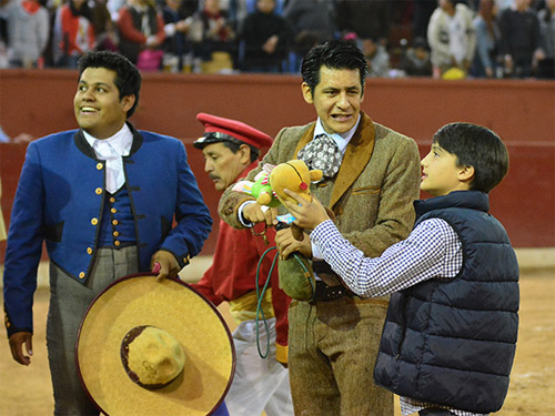 Incidencias: Los Forcados Potosinos realizaron una buena pega al segundo intento y fueron ovacionados. El banderillero Miguel Devo sufrió una lesión durante la lidia del 3o. Y El Chihuahua sufrió una cornada cerrada en el muslo izquierdo, pendiente de revisión médica. El Zapato dio una vuelta al ruedo con el nieto del ganadero.