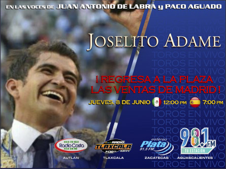 Al Toro México regresa a la presente Feria de San Isidro para transmitir la segunda corrida de Joselito Adame, en las Ventas de Madrid, programada para este jueves 8 de junio, tarde en la que actuará junto a Manuel Jesús "El Cid" y Juan del Álamo, ante toros de Alcurrucén