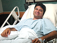 El banderillero Gustavo Campos se recupera en una habitación del Hospital San Javier, de las dos cornadas sufridas ayer en la plaza "Nuevo Proreso" de Guadalajara, y en la siguiente entrevista nos comenta el momento que vivió en los pitones del toro de Real de Saltillo que le hirió en el escroto y cerca del recto.