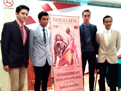 En la combinación se encuentran anunciados Emilio y Sebastián Palomo, quienes lidiarán cuatro novillos de Zacatepec, de encaste Murube, propiedad de la familia Muñoz. Abrirán el festejo los niños toreros Marco Peláez y Gerardo Romano, que son alumnos de las escuelas taurinas de Tlaxcala.