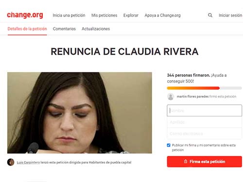Luis Carpintero ha abierto una petición a través de la plataforma Change.org, con la finalidad de sumar firmas para solicitar la renuncia de la alcaldesa de Puebla,