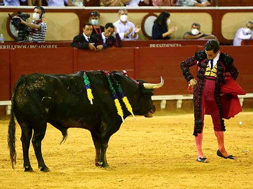 El Puerto de Santa María (Cádiz), España.- Segundo festejo de feria. Lleno del aforo permitido, en tarde agradable, con algunas ráfagas de viento. Toros de Garcigrande (3o., sobrero sustituto de una flojo, casi por cumplir seis años), dos cinqueños, desiguales en presentación y hechuras, de juego variado, de los que los manejables fueron muy nobles (1o., 2o. y 6o.), y los otros muy complicados, sobre todo el 4o. Pesos: 505, 480, 475, 485, 565 y 500 kilos.
