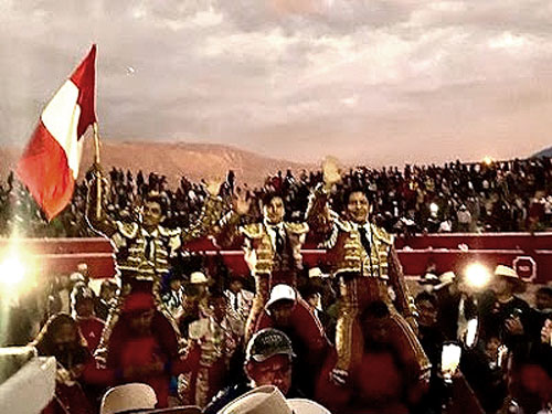 Pauza (Ayacucho) Perú. Plaza de toros. Lleno en tarde agradable. Corrida en honor del Apóstol Santiago. Toros de diversas ganaderías locales de buen juego en términos generales.