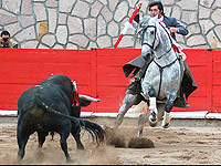 Su actuación con el sexto fue idénticamente entregada, y redondeó mejor la lidia ya que el toro, aun sin ser bueno, por lo menos lo dejó andar más relajado, y fue así como realizó quiebros montando a "Matador", otro caballo con unos aires excelentes.