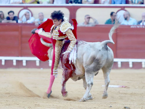 A pesar de estar calado, regresó a la cara del toro y concluyó su faena con unas manoletinas previas a una estocada que le valió para cortar una oreja con mucha fuerza. Pasó a la enfermería por su propio pie donde se le aplicaron las primeras exploraciones de rigor.