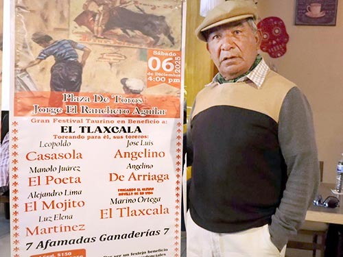 El popular taurino y maestro de toreros Marino Ortega "El Tlaxcala", recibirá un homenaje durante un festival que se llevará a cabo el sábado 6 de diciembre en la plaza Jorge "El Ranchero" Aguilar, donde será reconocida su labor como instructor de varias generaciones de aprendices y novilleros.